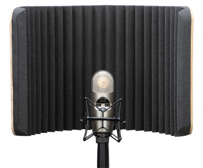 The Acousti-Shield AS50 is a stand-mounted acoustical shield which can substantially reduce unwanted reflections, echo flutter and environmental acoustic interference. Constructed of 5mm wood with a stunning walnut veneer finish, and 30mm high density acoustic foam. The AS50 was developed as an effective accessory for the audio recording professional. When effectively utilized, it can substantially reduce unwanted reflections, echo, and unwanted environmental acoustic interference. The adjustable clamp fits securely to most microphones - for easy, flexible placement.