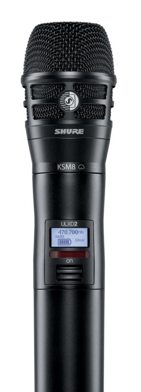 The transmitter comes with Shure's acclaimed K8B dualdyne interchangeable capsule, which kills proximity effect and smooths highs for superbly balanced vocal performances. With its easy-to-read LCD display, simple control menu, and multiple power options, the ULXD2/K8B Handheld Transmitter is a powerful, convenient option for use with your Shure ULX-D2 Wireless system. |
