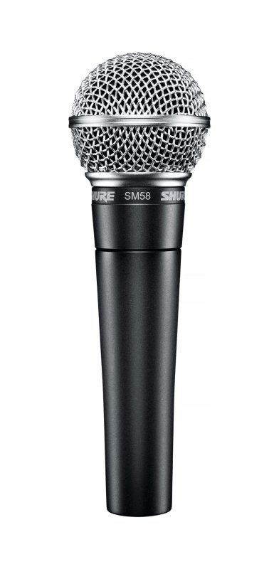The legendary Shure SM58 vocal microphone is designed for professional vocal use in live performance, sound reinforcement, and studio recording. Its tailored vocal response for sound is a world standard for singing or speech. A highly effective, built-in spherical filter minimizes wind and breath "pop" noise. A unidirectional (cardioid) pickup pattern isolates the main sound source while minimizing unwanted background noise. Rugged construction, a proven shock-mount system, and a steel mesh grille ensure that even with rough handling, the SM58 will perform consistently, outdoors or indoors.