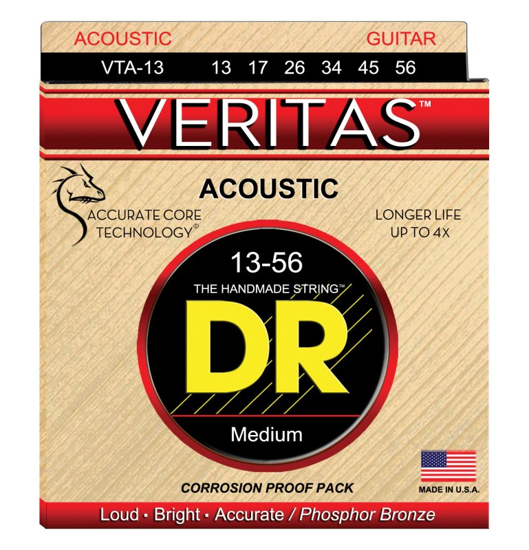 dr strings; dr; strings; handmade; phosphor; bronze; acoustic; guitar; strings; veritas; phosphor bronze; premium; 6; set; pack; medium; gauge; medium gauge; 13-56; .013-.056; avt steel; round wound; round; accurate core technology; act; d'addario; daddario; legato; ernie ball; elixir; ghs; dunlop; fender; gibson; taylor; maka; dr; sit; planet waves; orphee; cleartone; rotosound; aneco; martin; quality; music; song; superior; trusted; top tier; top of the line; excellent; best; kmc; jam; acoustic; electric; instrument; electronic; authentic; musician; style; sound; audio;Medium Gauge (.013 - .056)1 set of 6 StringsGuitar Type: Acoustic GuitarDR Veritas's Accurate Core Technology (ACT) strengthens the core of the strings and eliminates variations in the wire - long lasting strings delivering a quality sound