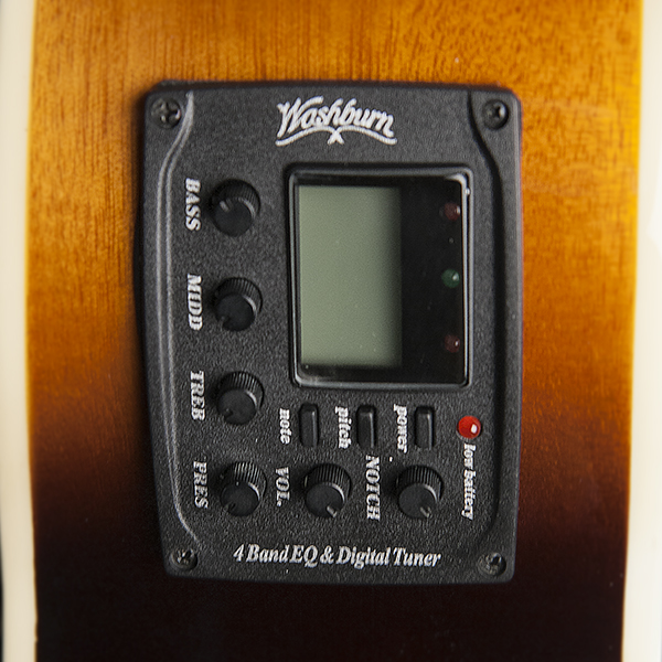 Washburn EA15 Festival Series Mini Jumbo Cutaway Acoustic Electric Guitar. Flame Transparent Blue