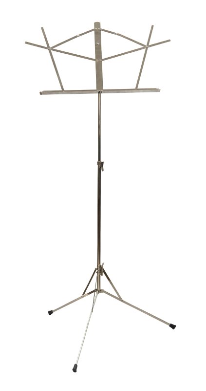 Quality music stand geared toward budget-minded individuals. Folds easily. 2-section design. Fixed angle desk. Fully extends 53 and folds down to 21-1/2. Nickel.