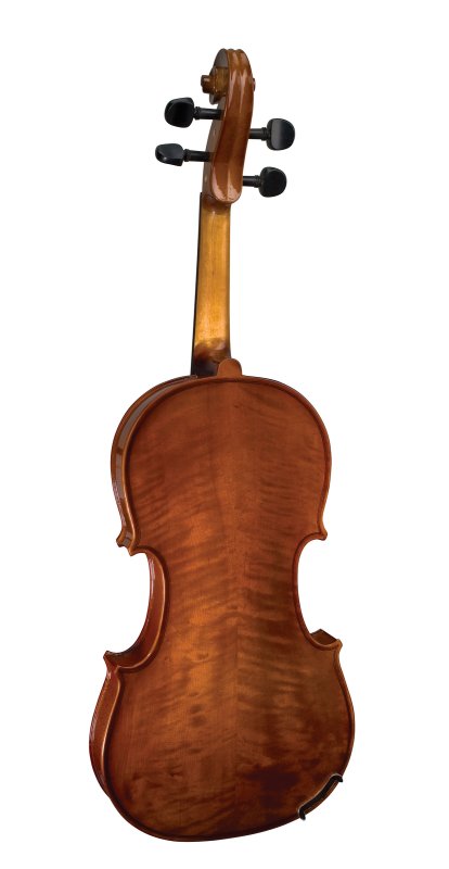 Polished warm brown laquer finish. outfits include octagonal wood horsehair bow with ebony frog, lightweight canvas covered case with instrument blanket and exterior shoulder rest pocket(violin/viola) or padded backpack bag (cello/bass)