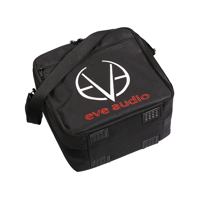 This carrying soft-case is large enough to accommodate a pair of SC203 speakers, including the FlexiPads, power supply and connecting cables. Also, a large extra compartment will even allow you to carry your 13" laptop or tablet. These soft-cases are sturdy, very comfortable and come with a convenient shoulder strap for easy carrying. Available in black, with an embroidered EVE Audio logo. |