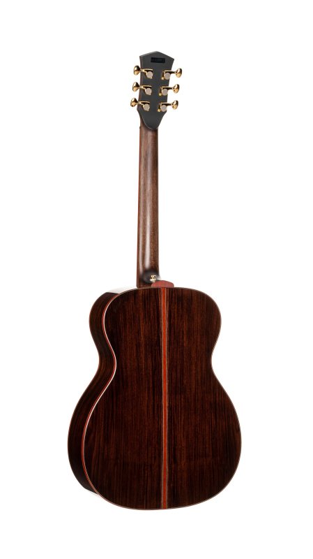 Featuring superior strength and dense grains along with the flexibility to resonate freely, the Master Grade solid Sitka spruce top is ideal for virtually any musical genre with a brilliant and clear high-end, warm and rich midrange, and a deep but tight low-end for a beautifully balanced sound. Pau Ferro, also known as Morado, Santos Rosewood or Bolivian Rosewood, boasts many of the qualities that are highly regarded in tonewood that is close to Indian Rosewood. It is stable, abrasion resistant, stiff, attractive, exotic and has good impression strength parallel to the grain. The reddish Padauk wood binding adds premium quality to the style. Its OM style body has a deeper body(91x106mm) than regular OM body specs which provides distinctively more volume and resonance. The L.R. Baggs Anthem pickup/preamp system delivers the pure acoustic vibrations of the instrument to the amplifier and PA without any coloration. Unneeded feedback can also be easily and effectively controlled through minimalistic controls that do not interfere with the look of the instrument. The combination of triangular shapes form geometrical designs on the headstock and fretboard position markers. The headstock inlays are composed of Ebony / Ovangkol / Walnut / Maple / Padauk, while Maple / Abalone / Padauk make up the position markers. The low-profile slim neck heel design is great for playing on the higher frets that gets less in the way of your playing hand while maintaining a solid tone transfer between neck and body of the guitar. There are many types of woods that are used for Fretboard but no other compares to the jet-black beauty and slick smoothness of Ebony. The sharp edges on the body, fretboard and frets are all hand-rolled to make them round, smooth and ultra- comfortable to touch and play. This process is highly complex and time-consuming and requires the skilled workmanship of experienced craftsmen. |