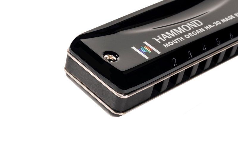 The HA-20 harmonica carries the colored Hammond logo, which looks great against its black shell. The HA-20 features Phosphor Bronze reeds and includes a hard shell carrying case.
