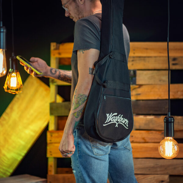 Washburn EA15 Festival Series Mini Jumbo Cutaway Acoustic Electric Guitar. Flame Transparent Blue