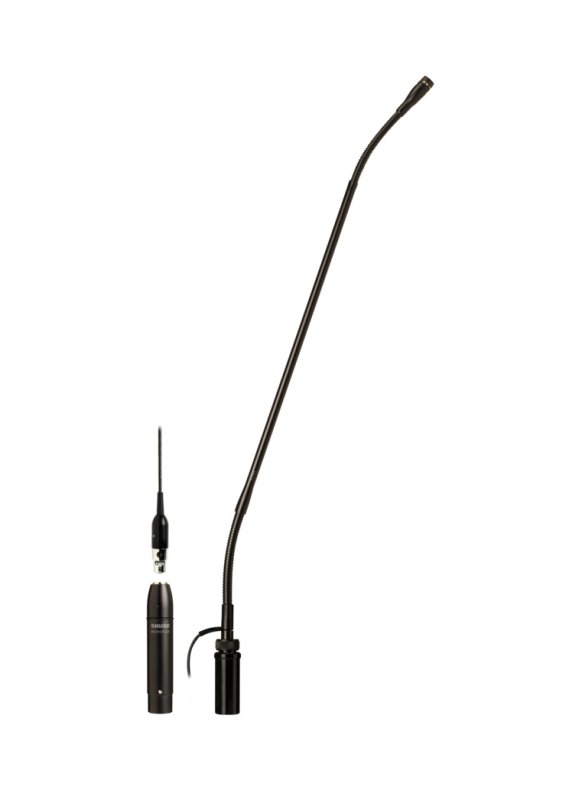 In-Line Preamp, Shock & Flange Mount, 10' Side- (or Bottom-) Exit Cable, Snap-Fit Foam Windscreen. Microflex Standard Gooseneck microphones bring a whole new meaning to the word flexible with their fully adjustable gooseneck. Designed for easy replacement and available in cardioid, supercardioid and omnidirectional polar patterns, the interchangeable cartridges offer wide frequency response and accurate sound reproduction for a wide variety of applications, such as houses of worship, courtrooms and conference centers. Plus, the condenser cartridges fit every model in the Microflex product line for enhanced convenience and consistent sound.Â