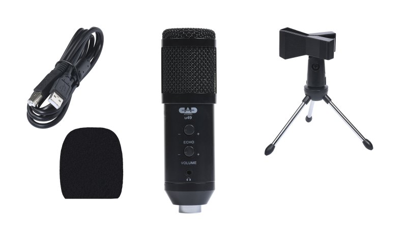 The U49 side address studio mic delivers high fidelity performance for your next creative project. Equipped with a true studio grade capsule, headphone monitor, mic volume and echo signal processing. The U49 delivers smooth, articulate audio reproduction. Outfitted with a tripod stand, mounting clip, USB cable and windscreen. |